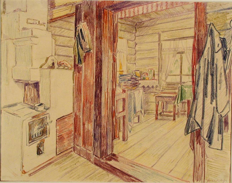 Фогелер Г. "Общежитие рабочих рудника им. Самойловича". 1933 -1934 гг.Бумага. Карандаш цветной. 24 x 30,4 см.