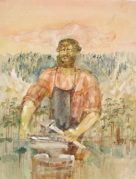 Курдов В. И. графика, рисунок (заставки, концовки к рунам). 1948 г. г. Ленинград Бумага. Акварель. 41 x 31,5 см.