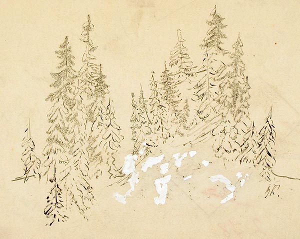 Курдов В. И. графика, рисунок (заставки, концовки к рунам). 1948 г. г. Ленинград Бумага. Акварель. 36 x 28 см.