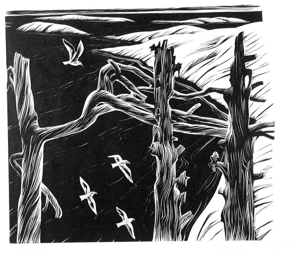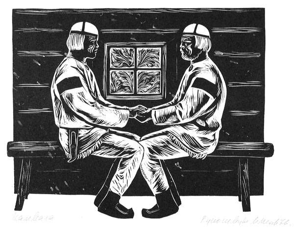 Мечев М. М. линогравюра. 1971 г. Линогравюра ч/б. 20,2 x 28,9 см.