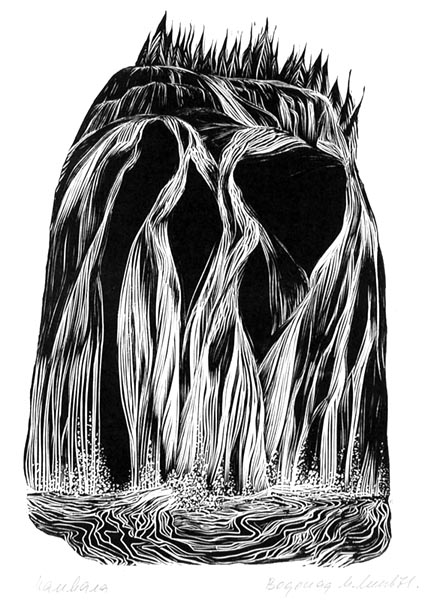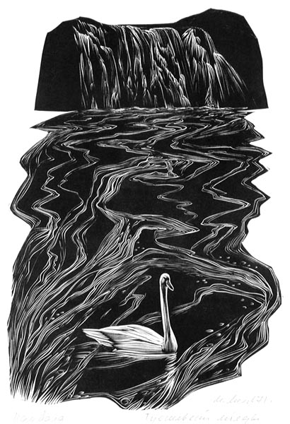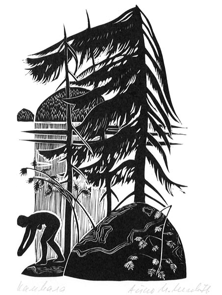 Мечев М. М. линогравюра. 1971 г. Линогравюра ч/б. 31,2 x 23,5 см.