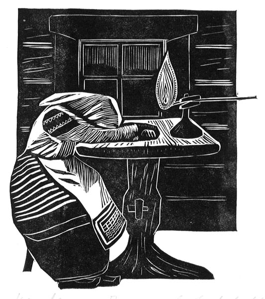 Мечев М. М. линогравюра. 1971 г. Линогравюра ч/б. 30,5 x 21,5 см.