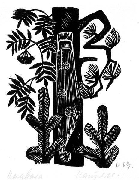 Мечев М. М. линогравюра. 1969 г. Линогравюра ч/б. 27,2 x 16,5 см.