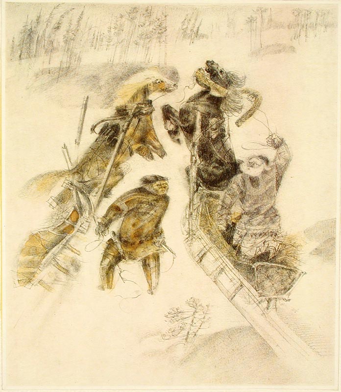 Колобаев А. А. рисованная графика. 1926 -1927 гг. Карелия (Калевальский р-н ) Бумага, картон. Уголь. 53,7 x 70 см.