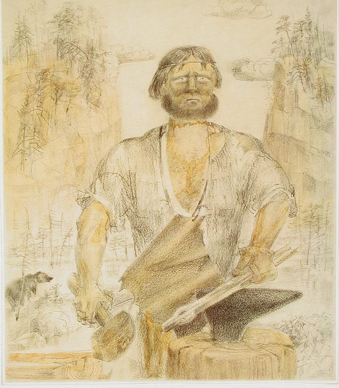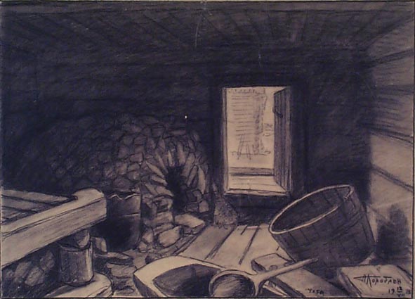 Колобаев А. А. рисованная графика. 1926 г. Карелия (Калевальский р-н ) Бумага, картон. Уголь, карандаш. 53,5 x 69 см.