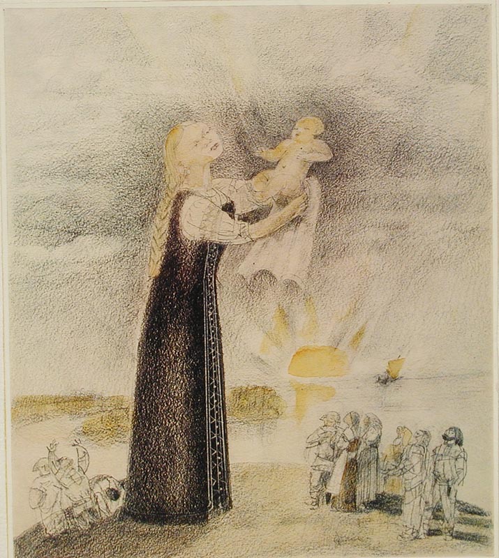 Курдов В. И. графика, рисунок (заставки, концовки к рунам). 1948 г. г. Ленинград Бумага. Тушь черная, литографский карандаш. 22 x 32 см.