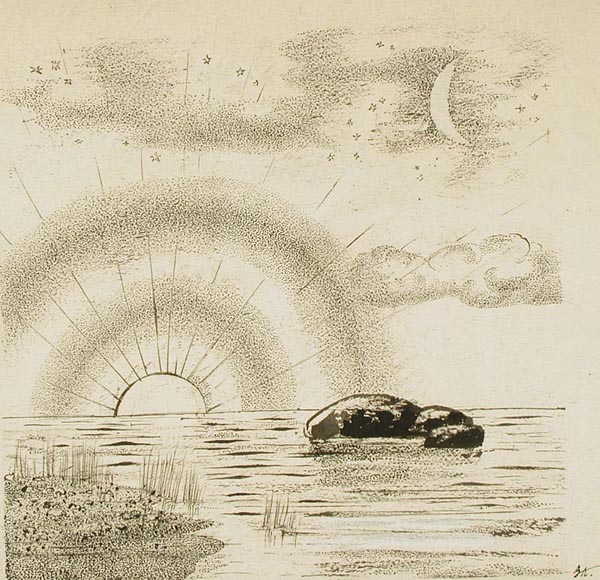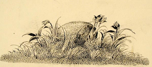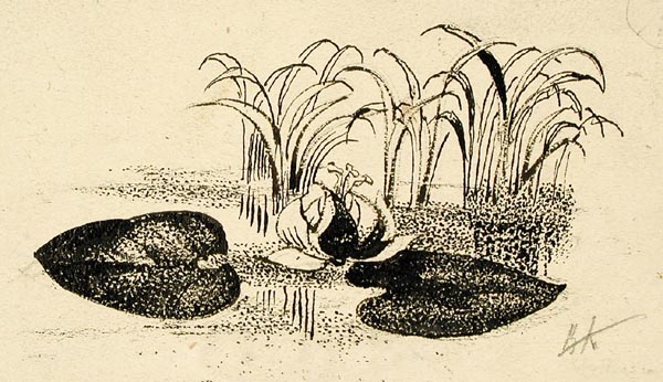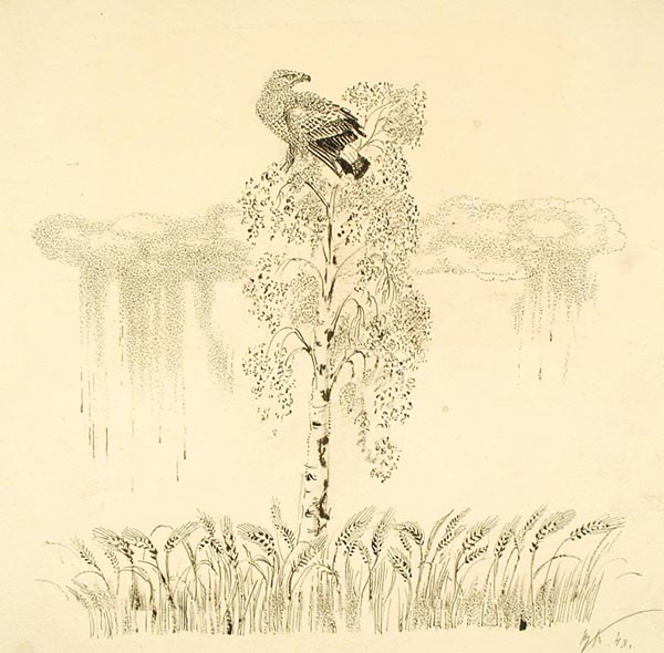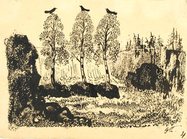 Курдов В. И. графика, рисунок (заставки, концовки к рунам). 1948 г. г. Ленинград Бумага. Тушь черная, литографский карандаш. 11 x 15,6 см.