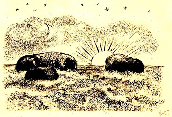 Курдов В. И. графика, рисунок (заставки, концовки к рунам). 1948 г. г. Ленинград Бумага. Тушь черная, литографский карандаш. 22 x 28 см.