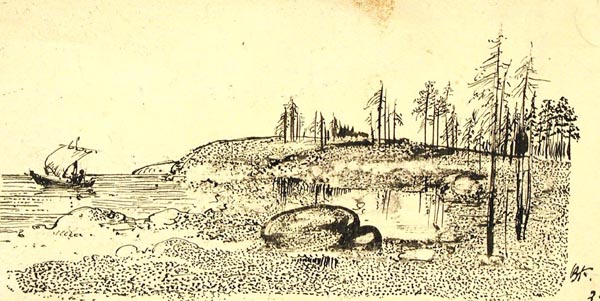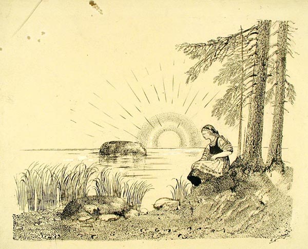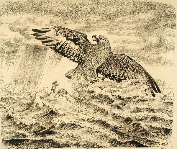 Курдов В. И. графика, рисунок (заставки, концовки к рунам). 1948 г. г. Ленинград Бумага. Тушь черная, литографский карандаш. 22,3 x 28 см.