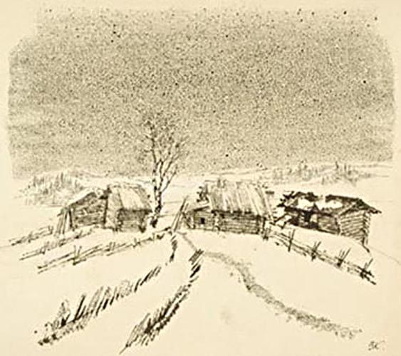 Курдов В. И. графика, рисунок (заставки, концовки к рунам). 1947-1953 гг. г. Ленинград Бумага. Тушь черная, литографский карандаш. 11 x 16 см.