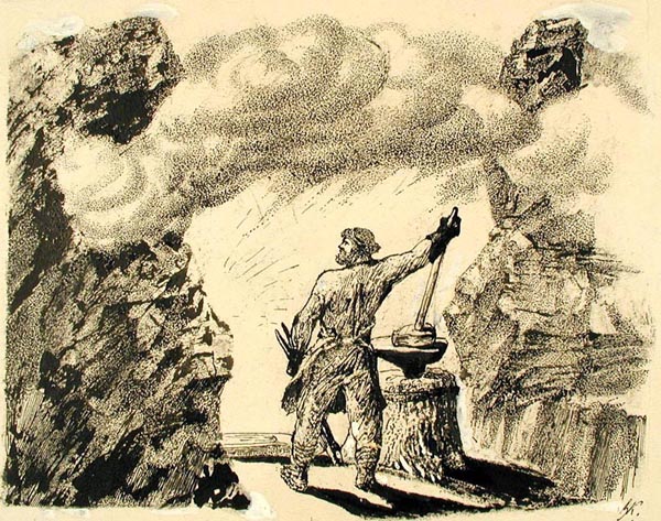 Курдов В. И. графика, рисунок (заставки, концовки к рунам). 1947-1953 гг. г. ЛенинградБумага. Тушь черная, литографский карандаш. 22,2 x 32 см.