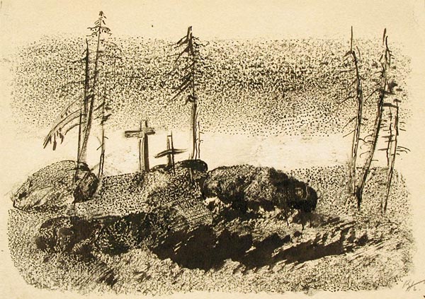 Курдов В. И. графика, рисунок (заставки, концовки к рунам). 1947-1953 гг. г. ЛенинградБумага. Тушь черная, литографский карандаш. 11 x 16 см.