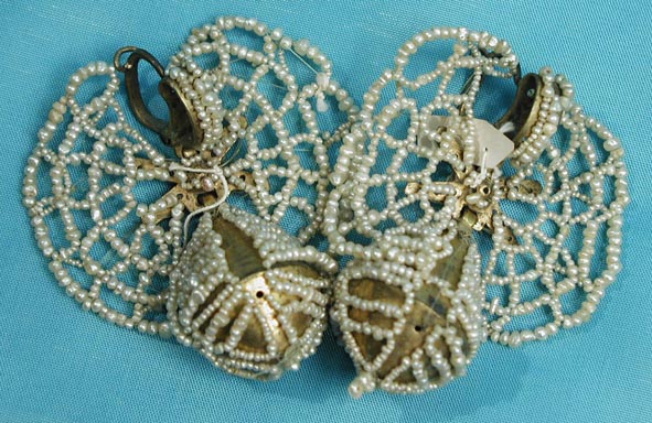 Жемчуг речной, металл. Низание. 6,5 x 6 см.
